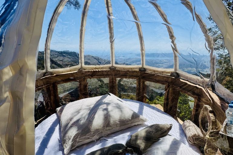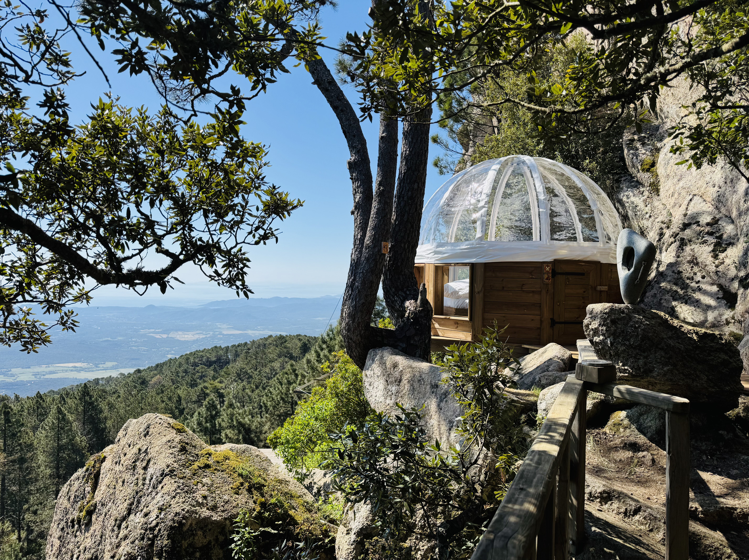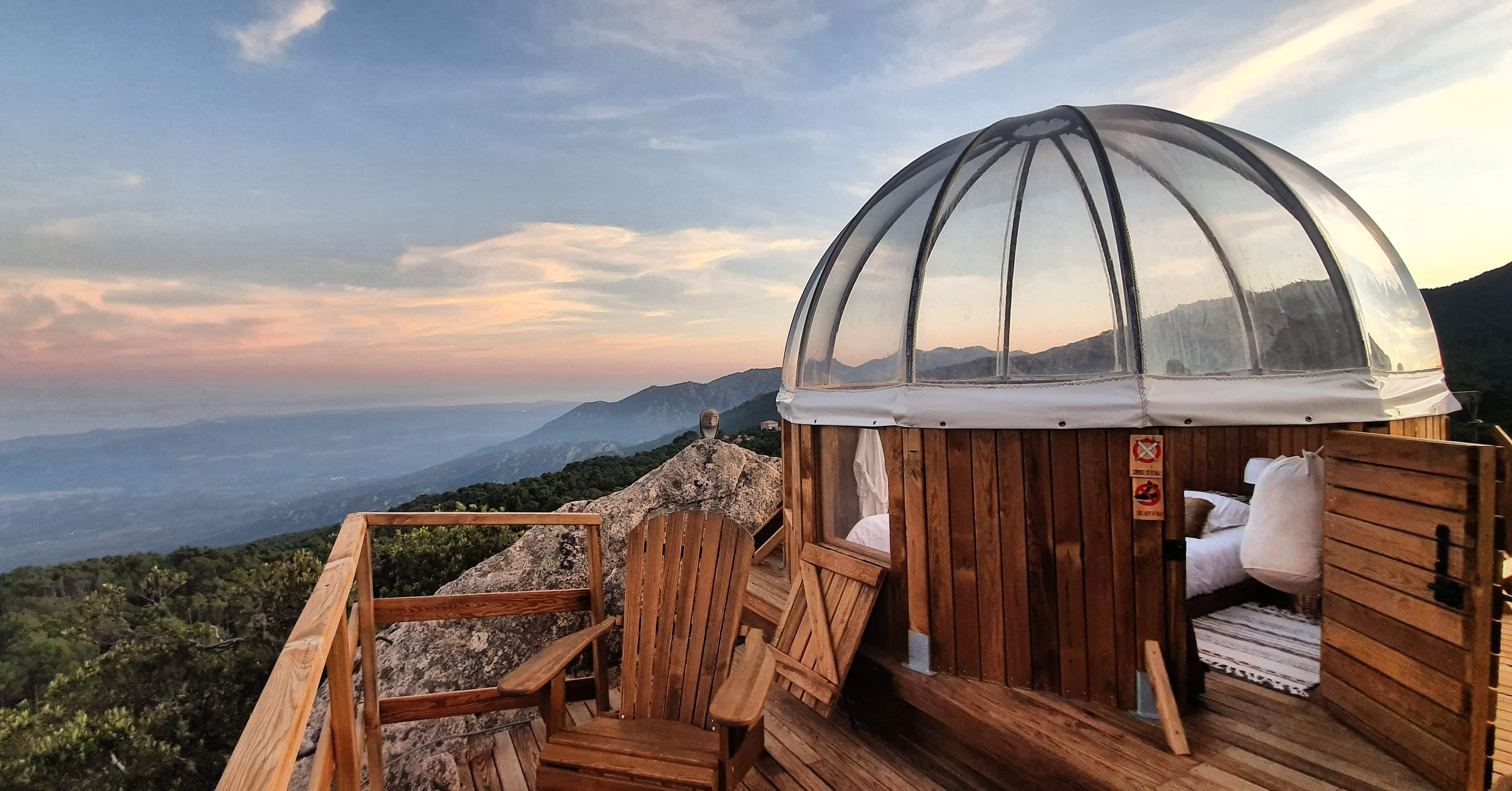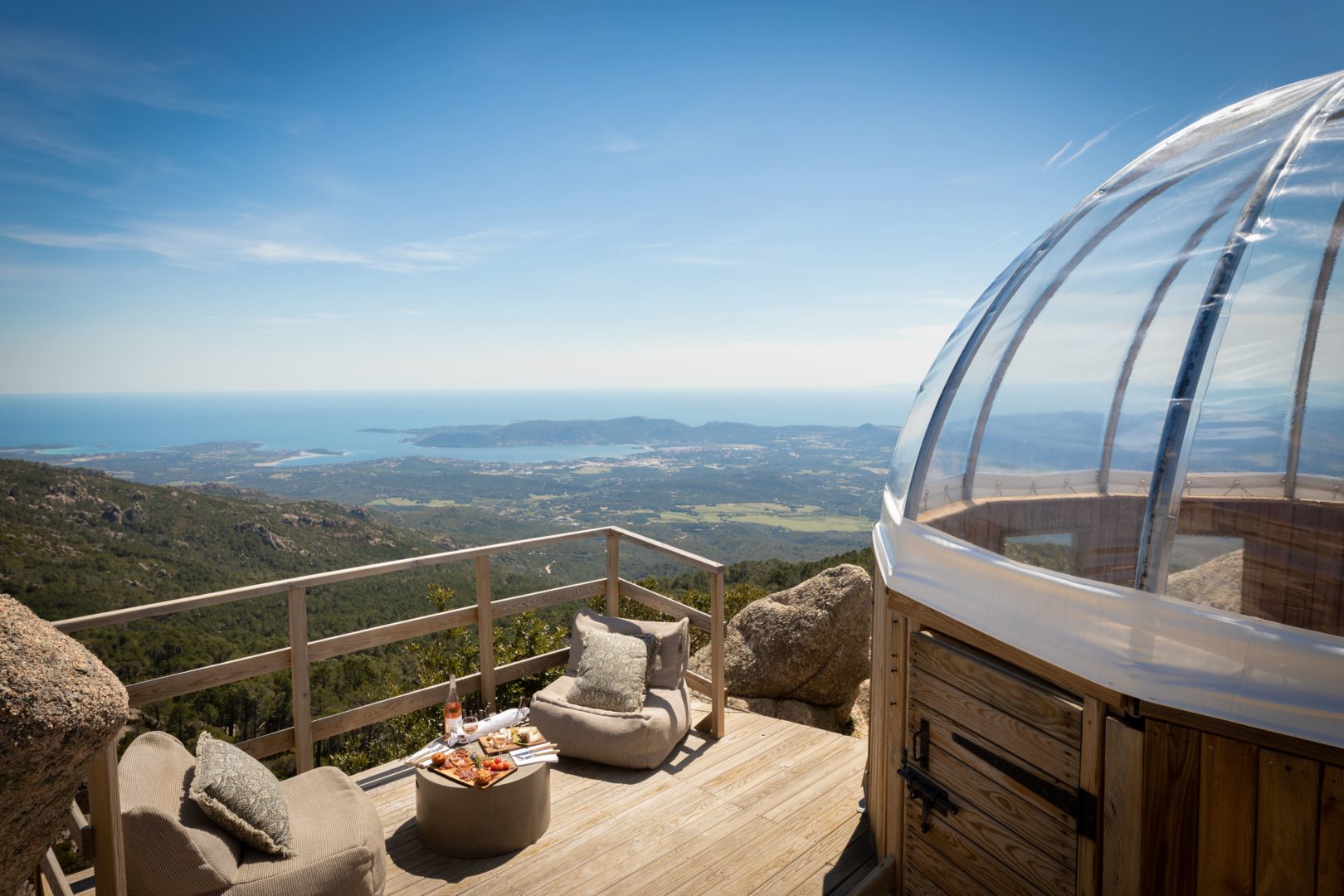 De part et d'autre, l'eau omniprésente, avec le lac de l'Ospédale d'un côté, la mer de l'autre. Là, quelques bulles légères semblent flotter entre ciel et terre… Un concept inédit où tous les rêves sont permis.
