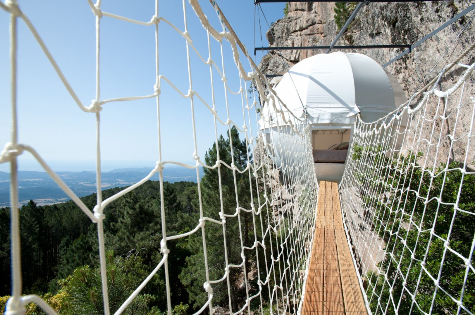 Solidement fixé sur une plateforme épousant parfaitement le paysage, le Cocoon 4 se hisse au sommet d'une crête rocheuse, à près de 80 mètres du sol et 1 000 mètres d'altitude. Véritable nid d'aigle, il domine un panorama exceptionnel et offre une vue à 360° absolument inoubliable.