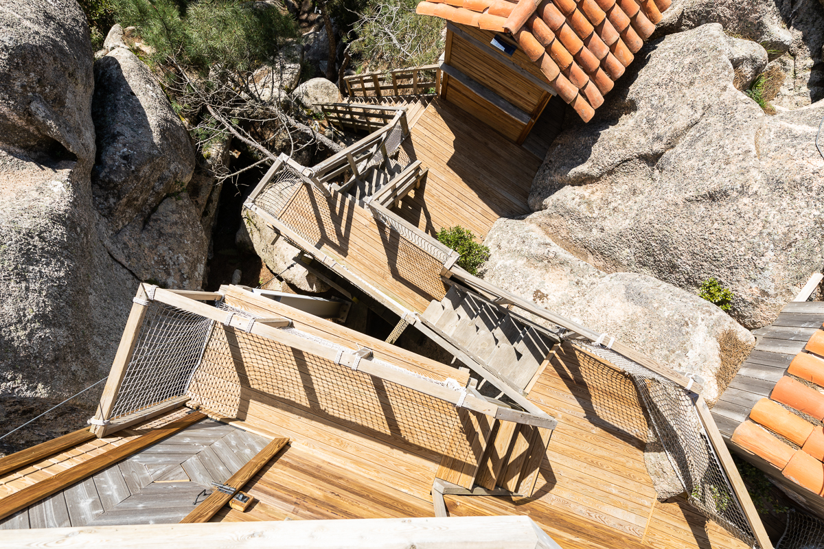 Fixé à près de 30 mètres du sol sur une plateforme octogonale, L’Altru Celu se fond avec discrétion dans le paysage. Esthétique, épuré et parfaitement intégré à son environnement, ce grand cocon invite à la contemplation et au rêve, tout en offrant un confort inégalé.