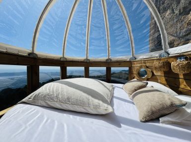 Une plateforme dominant un panorama exceptionnel, un grand dôme cristallin entièrement transparent, aussi design qu’accueillant.