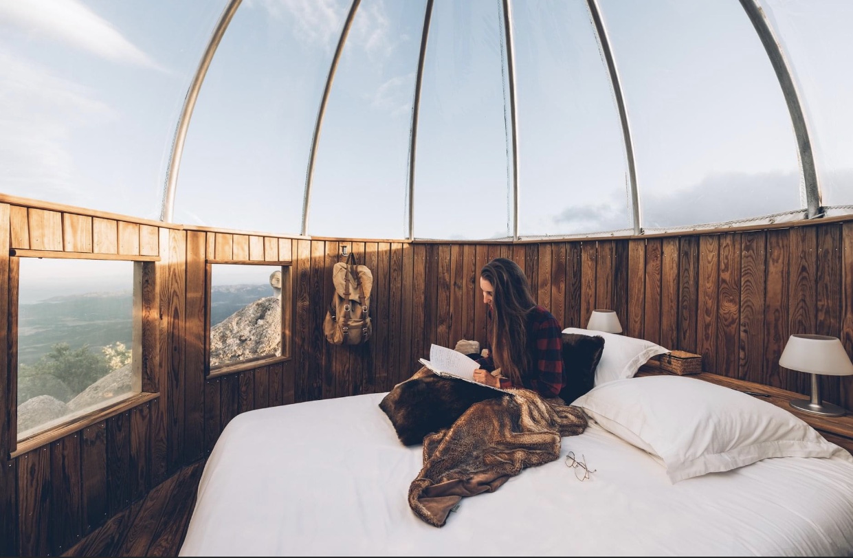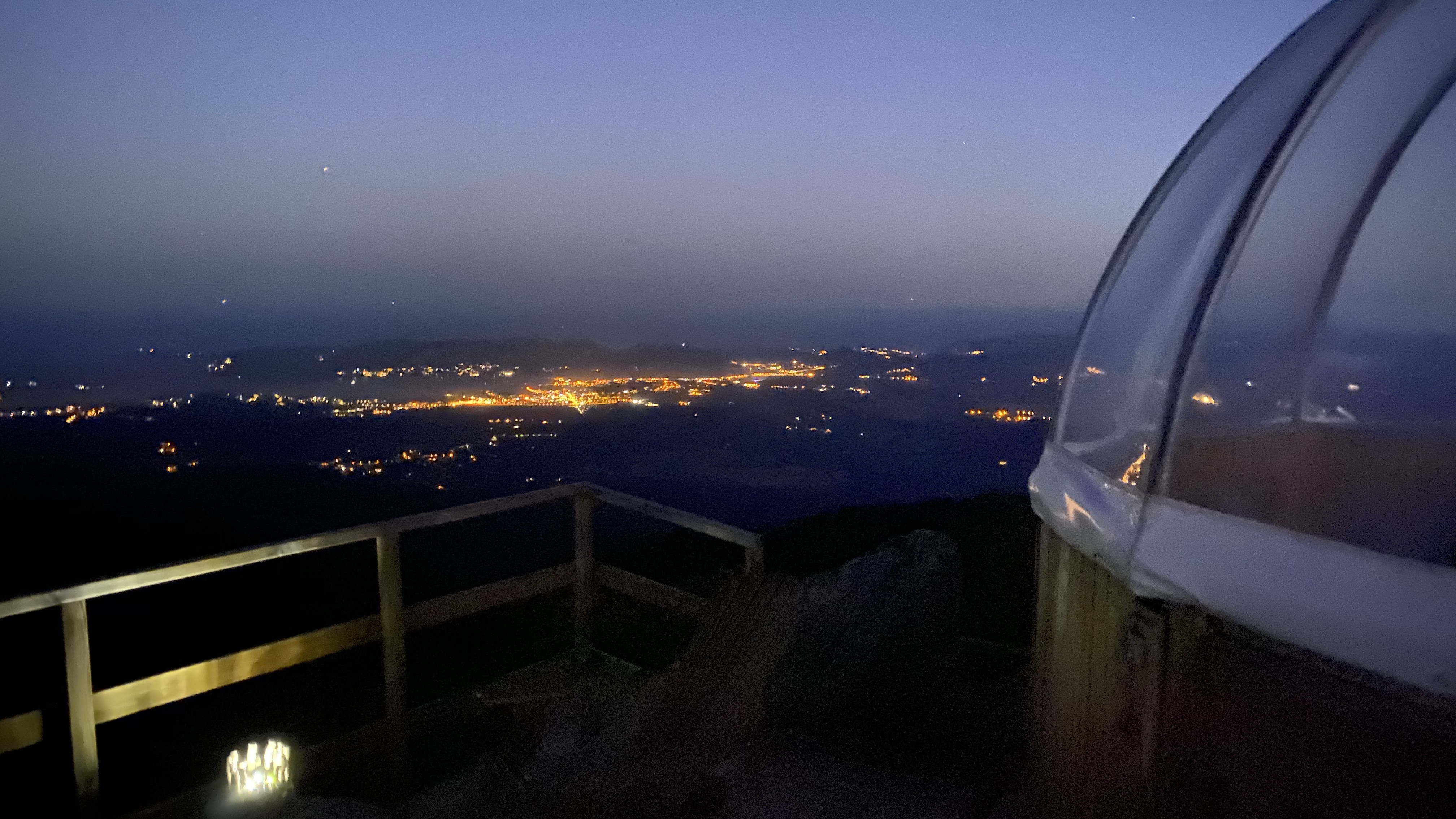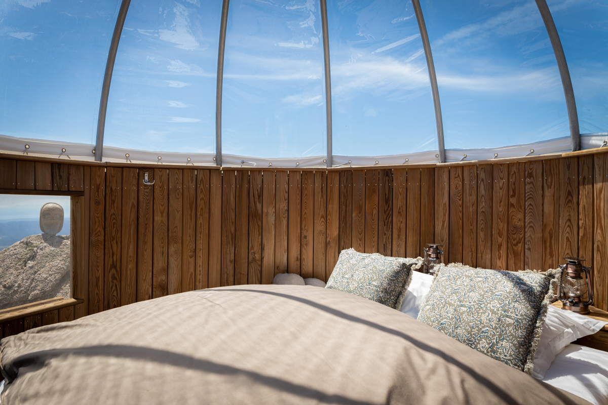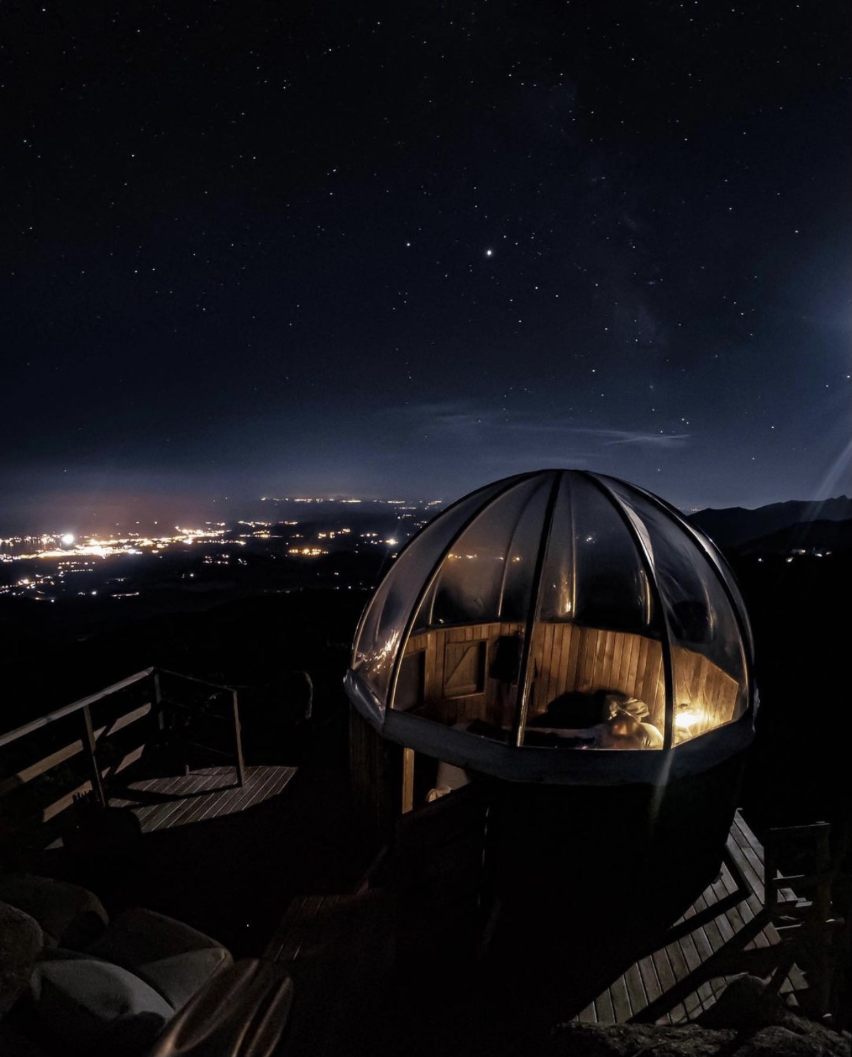 Sa situation unique promet une vue à couper le souffle, vécue dans le confort d’un dôme cocooning, où l’on se sent littéralement seuls au monde. Ses deux terrasses panoramiques accueillent vos soirées, vos réveils et ce moment suspendu où le rêve devient réalité.